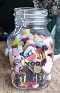Deze snoeppot is te voorzien met uw eigen tekst in de kleur van uw keuze.