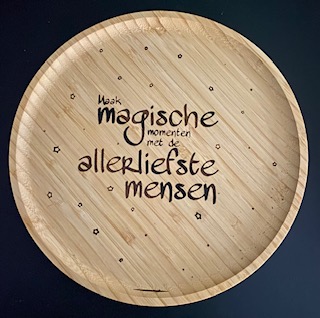 Een mooi houten bord met een eventueel zelf te bedenken tekst en/of afbeelding. Deze plank is natuurlijk ook te gebruiken voor andere doeleinden, zoals tafeldecoratie.